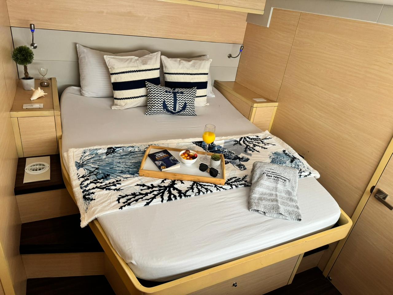 ★★★★★Vive la máxima expresión de confort y estabilidad sobre el agua a bordo de nuestro majestuoso Catamarán de 52 pies, una embarcación diseñada para quienes buscan disfrutar del Caribe con una sensación de amplitud inigualable y total privacidad. Gracias a su imponente diseño de doble casco, este catamarán ofrece una navegación suave y equilibrada, eliminando casi por completo el balanceo y permitiendo que hasta 40 invitados disfruten con total comodidad de sus generosas áreas sociales, que incluyen una proa abierta con mallas para relajarse sobre el mar, un flybridge con vistas panorámicas privilegiadas y una bañera de popa integrada al salón principal. Es la elección predilecta en Cartagena para eventos exclusivos, celebraciones familiares o grupos corporativos que exigen un estándar superior, contando con interiores climatizados de lujo y un sistema de sonido profesional con conectividad total